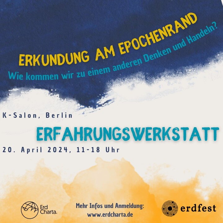 Die Gattung Mensch ist an den biologischen und physischen Belastungsgrenzen des Planeten angelangt und wir müssen das Ruder so schnell wie möglich herumreißen. Das ist nicht einfach. Und dafür brauchen wir Energie und Mut und Gemeinschaft. Hildegard Kurt, Kulturwissenschaftlerin und im Kontext Erdcharta aktiv, und Mitkämpferin für die Rechte der Natur - bietet Workshops an, die uns dabei helfen, nicht nur verstehen, worum es heute geht, sondern auch die Kraft zu finden, das zu tun, was möglich ist. Sie zeigt auf, wo es Ermutigendes und Inspirierendes gibt, das Kraft für konstruktives Handeln gibt. Im April bietet sie folgende Erfahrungswerkstatt in Berlin an: Erkundung am Epochenrand: Wie gelangen wir zu einem anderen Denken und Handeln? Erfahrungswerkstatt in Berlin, 20. April 2024, 11–18 Uhr Weitere Information und zur Anmeldung